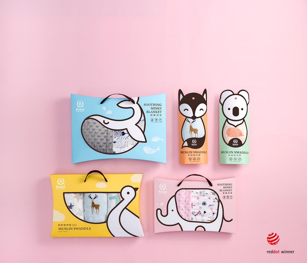 舒眠豆毯及紗布包巾系列禮盒以「陪伴」為概念延伸設計,將可愛童趣的動物化身為主角