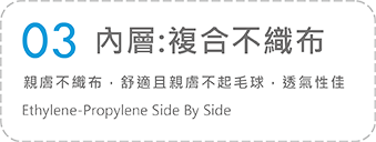 • 多層複合結構,透氣性良好,親膚層材質舒適不起毛球
