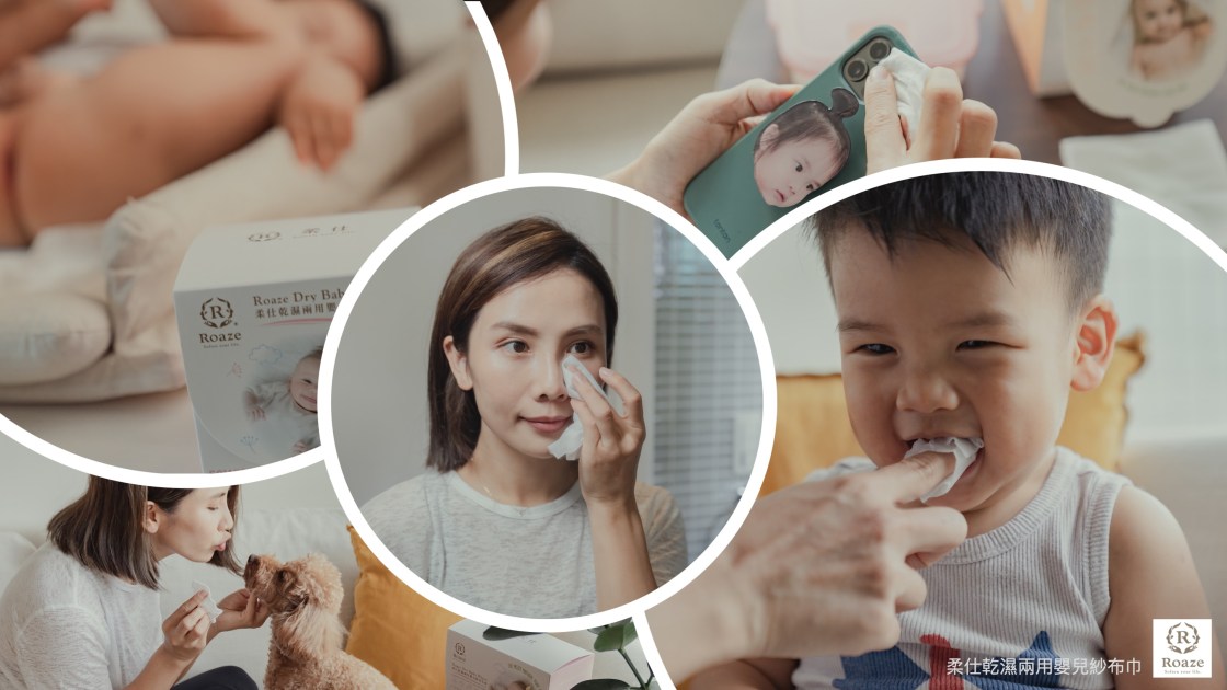 柔仕乾濕兩用巾可以乾的帶出門,不僅不會增加身上的重量,也不必擔心濕紙巾的添加物,只要搭配柔仕矽膠抽取盒,加了水以後就變成濕紙巾,在外頭儘管沒有帶盒子也能取飲用水幫寶寶擦拭,平時除了擦寶寶的臉、身體手腳、還可以擦手機、擦擦寵物的臉。