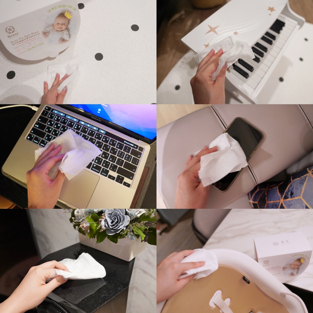 清潔消毒遊戲地墊、孩子的玩具、電腦銀幕&鍵盤、手機、傢俱音響、餐桌椅….等等,抽一張柔仕「乾濕兩用布巾」噴上酒精或是消毒噴霧,大範圍好擦拭,不會產生棉絮,也不會一下子就擦破掉,真心好用!推薦!