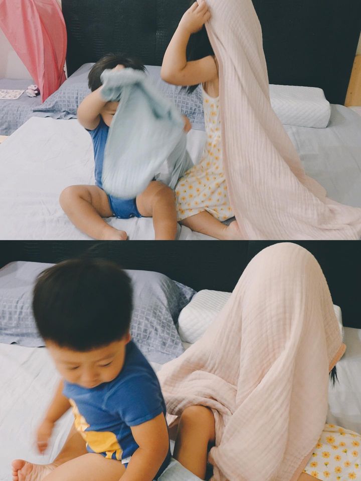萌萌、噠噠偶爾會拿來玩毛巾戰