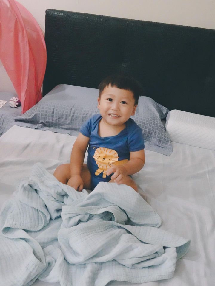尺寸110×75公分剛剛好 噠噠午睡都蓋這個