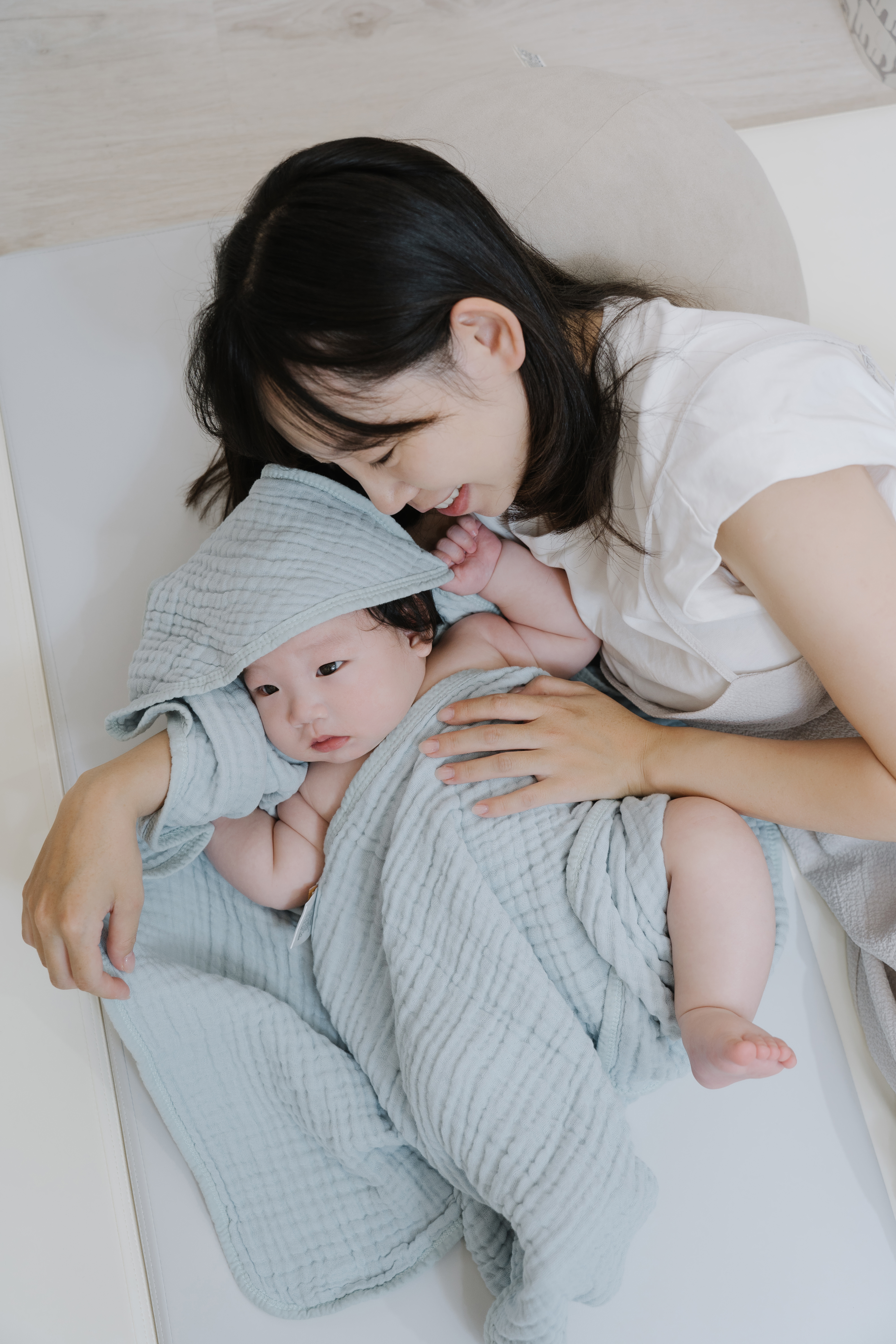 有了第一胎的經驗,這種快乾棉紗材質的浴巾真的很萬用!