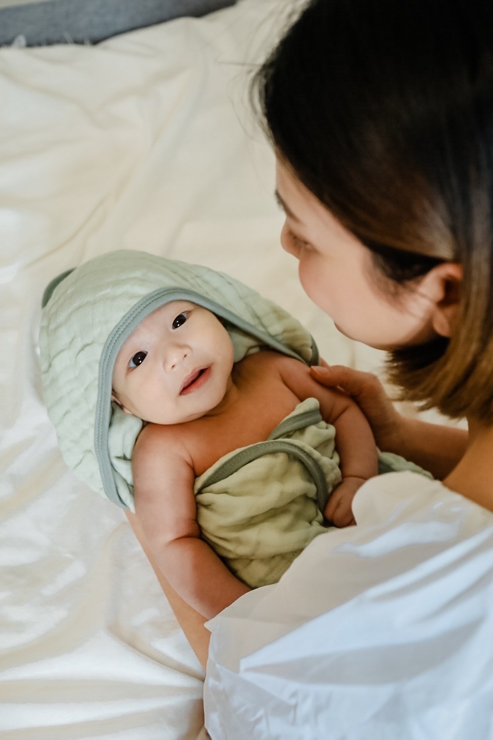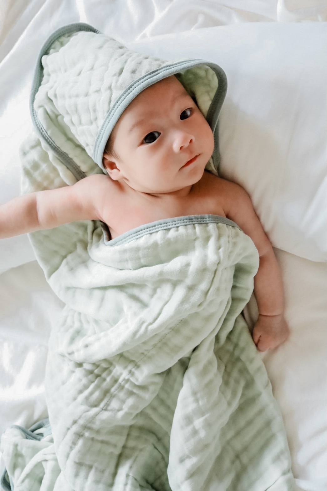 浴巾選擇了柔仕的 成長型連帽紗布浴巾