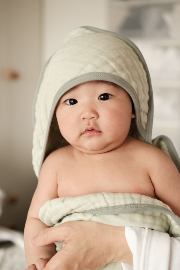 連帽的設計也很方便,洗完澡一定直接先套頭上吸水,