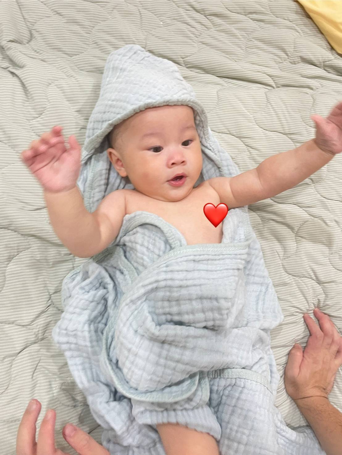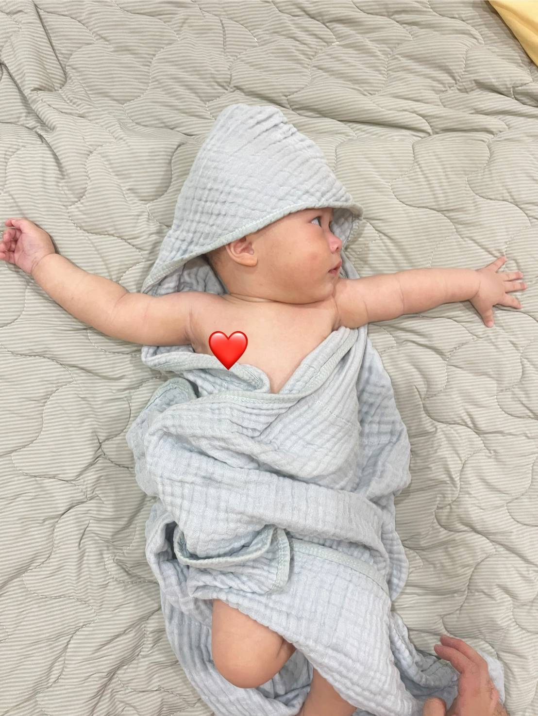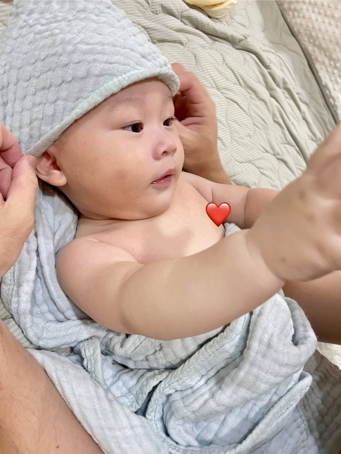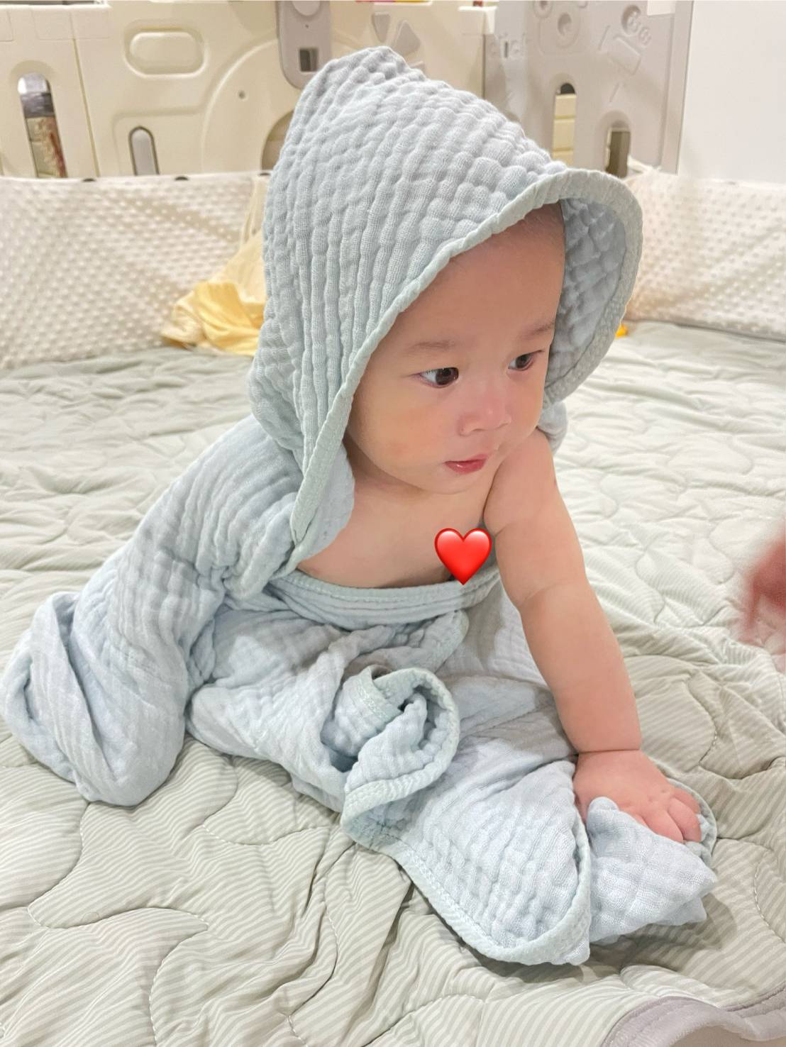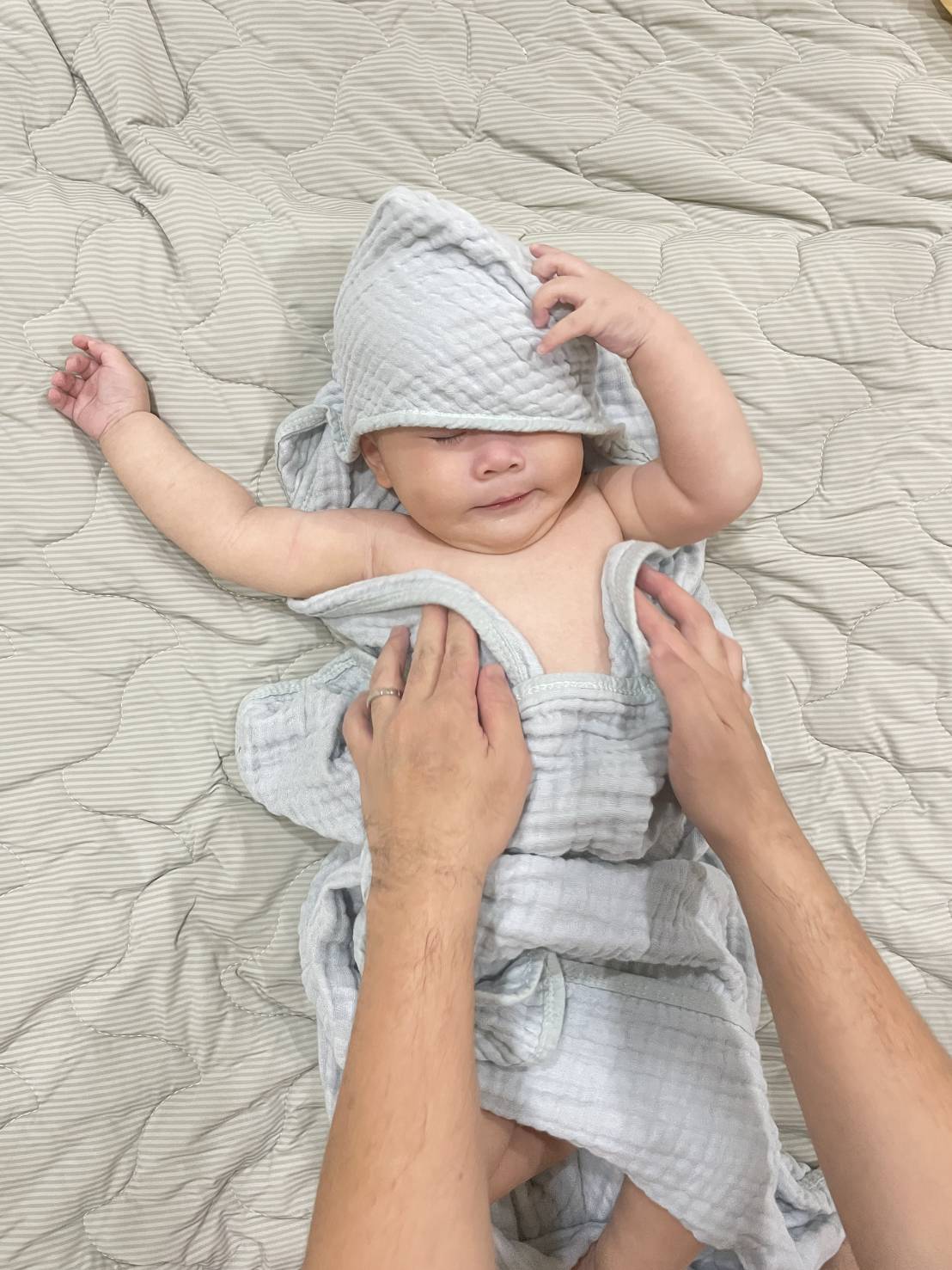 除了乾濕巾,「成長型連帽紗布浴巾」也是我大推的