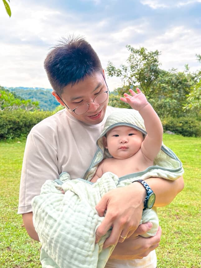 六層水洗紗布,吸水力快、透氣好,連帽設計不怕吹風感冒,抱著寶寶也不容易濕身~